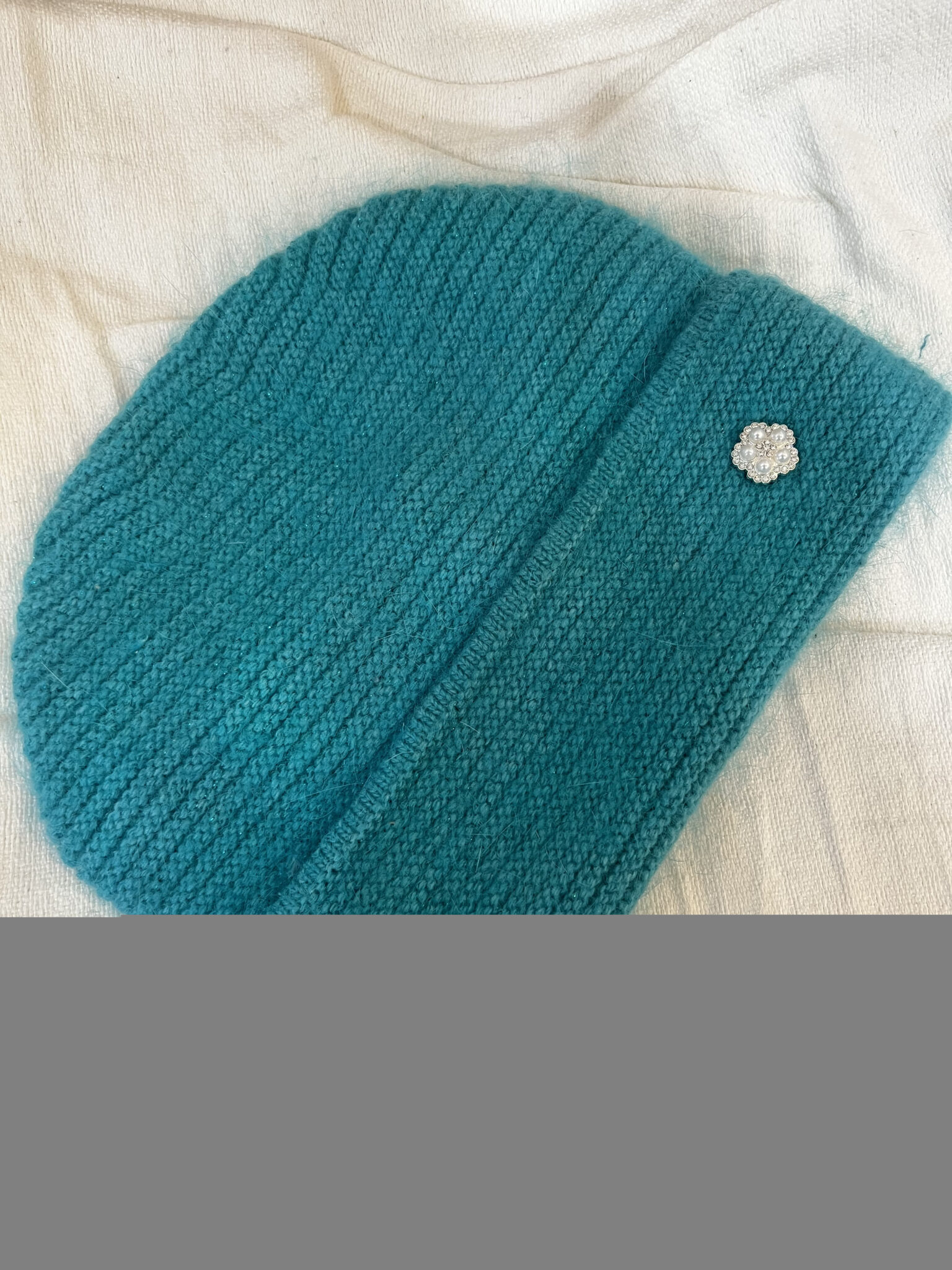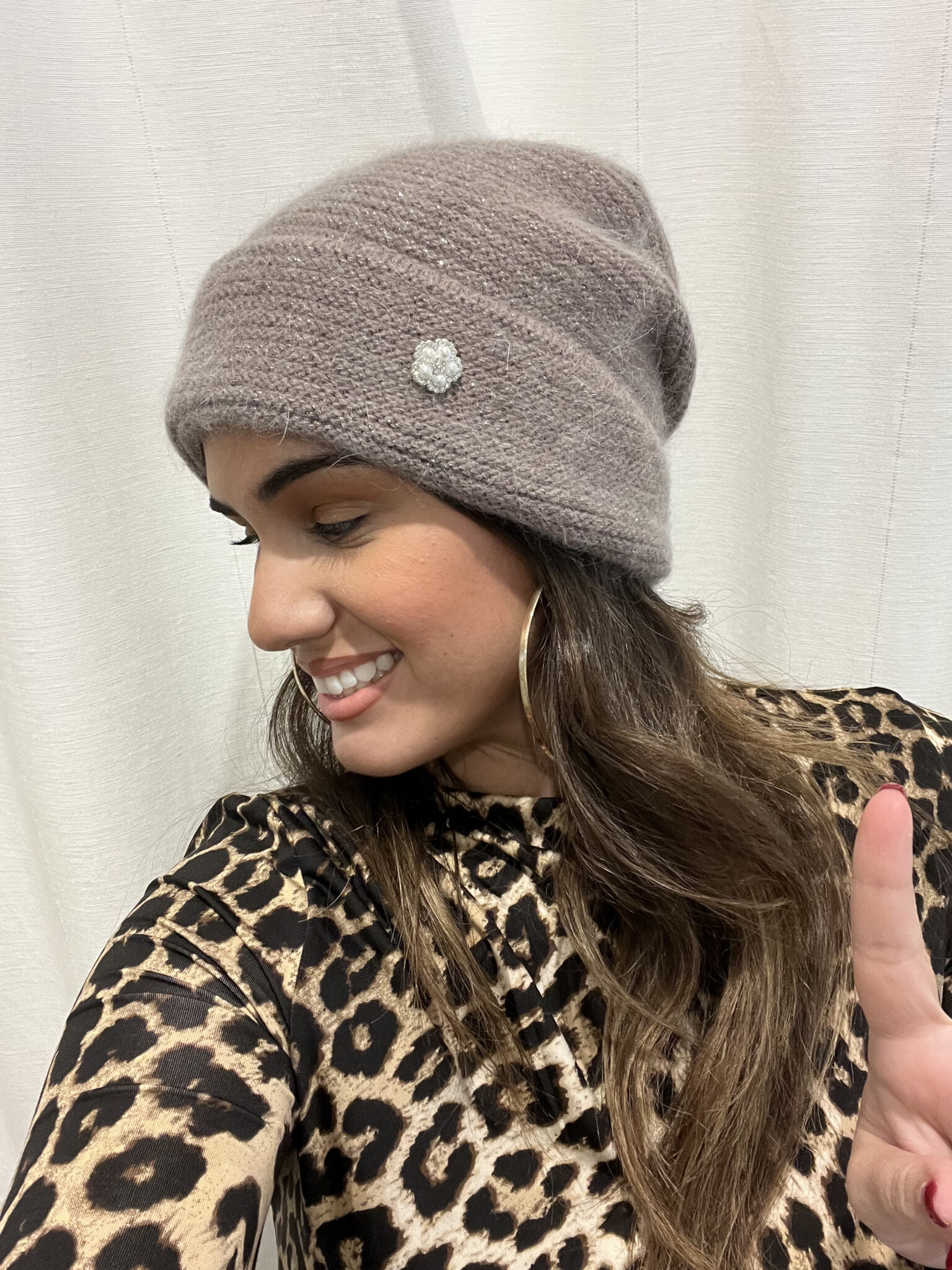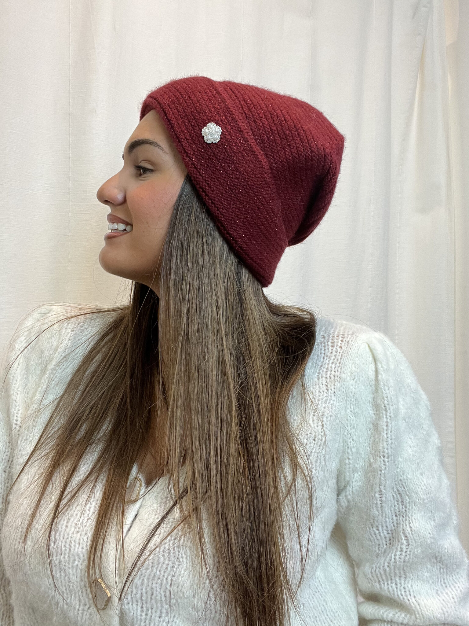 Le bonnet ultra doux et stylée avec sa perle fantaisies en forme de fleurs sur le devant.