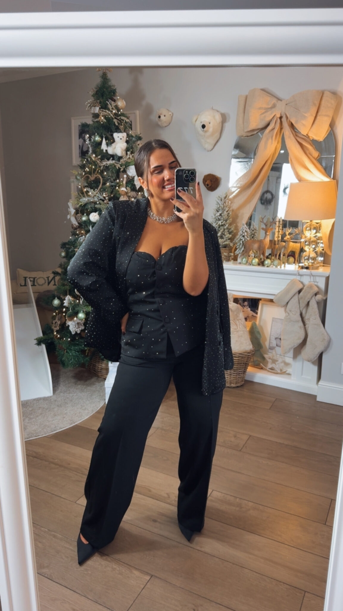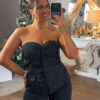 Le bustier BARY avec ses strass, le bustier parfait pour accompagner votre pantalon fluide noir favori.
