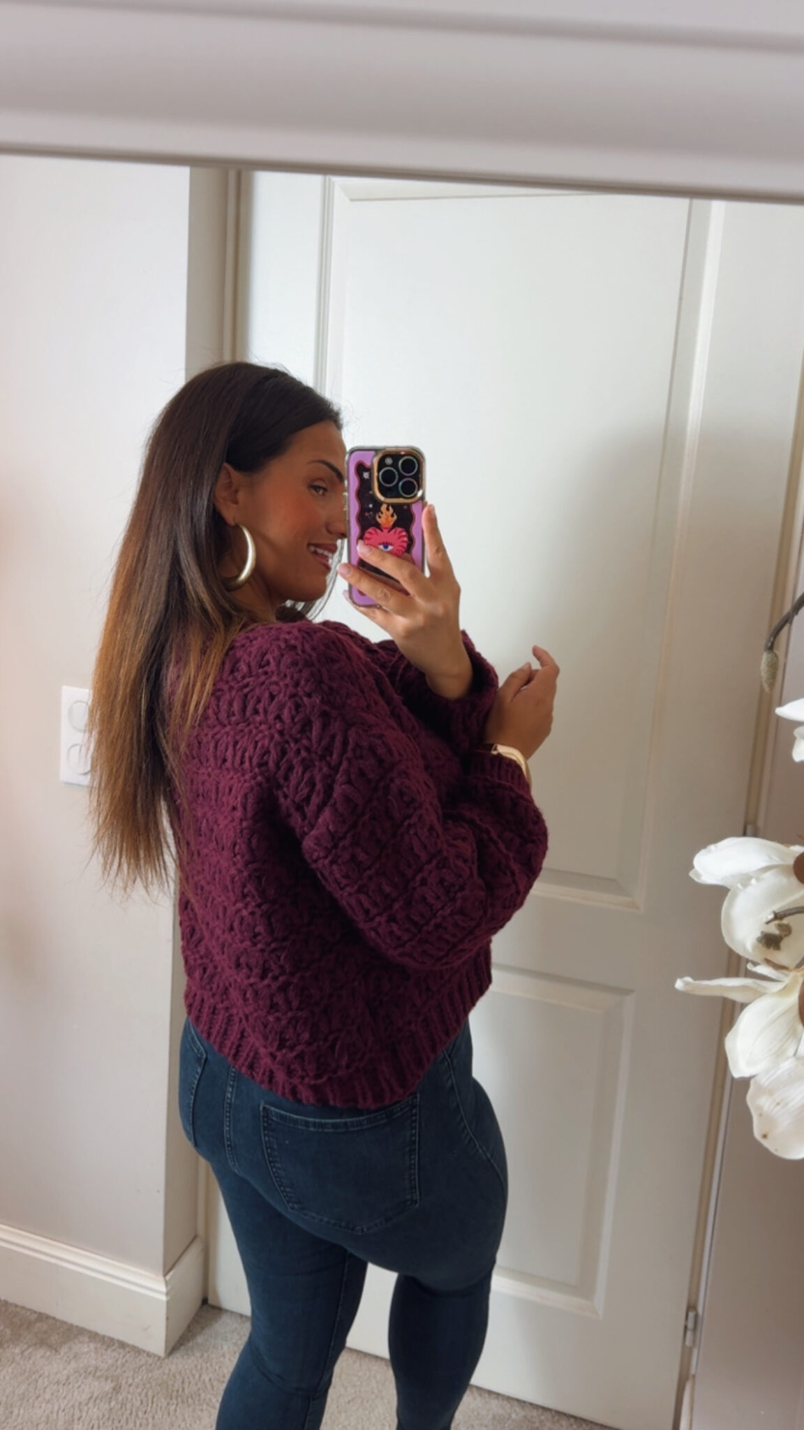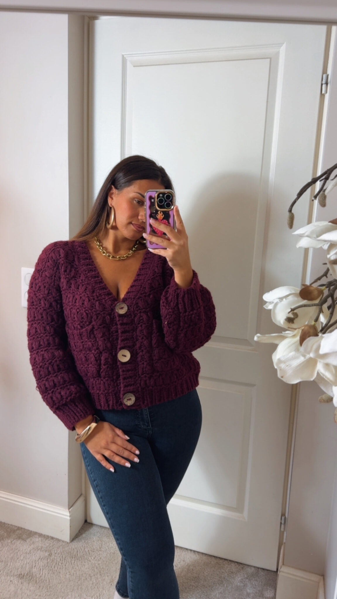 Le cardigan Carina avec sa douce couleur  prune pour un look automnal comme on aime.