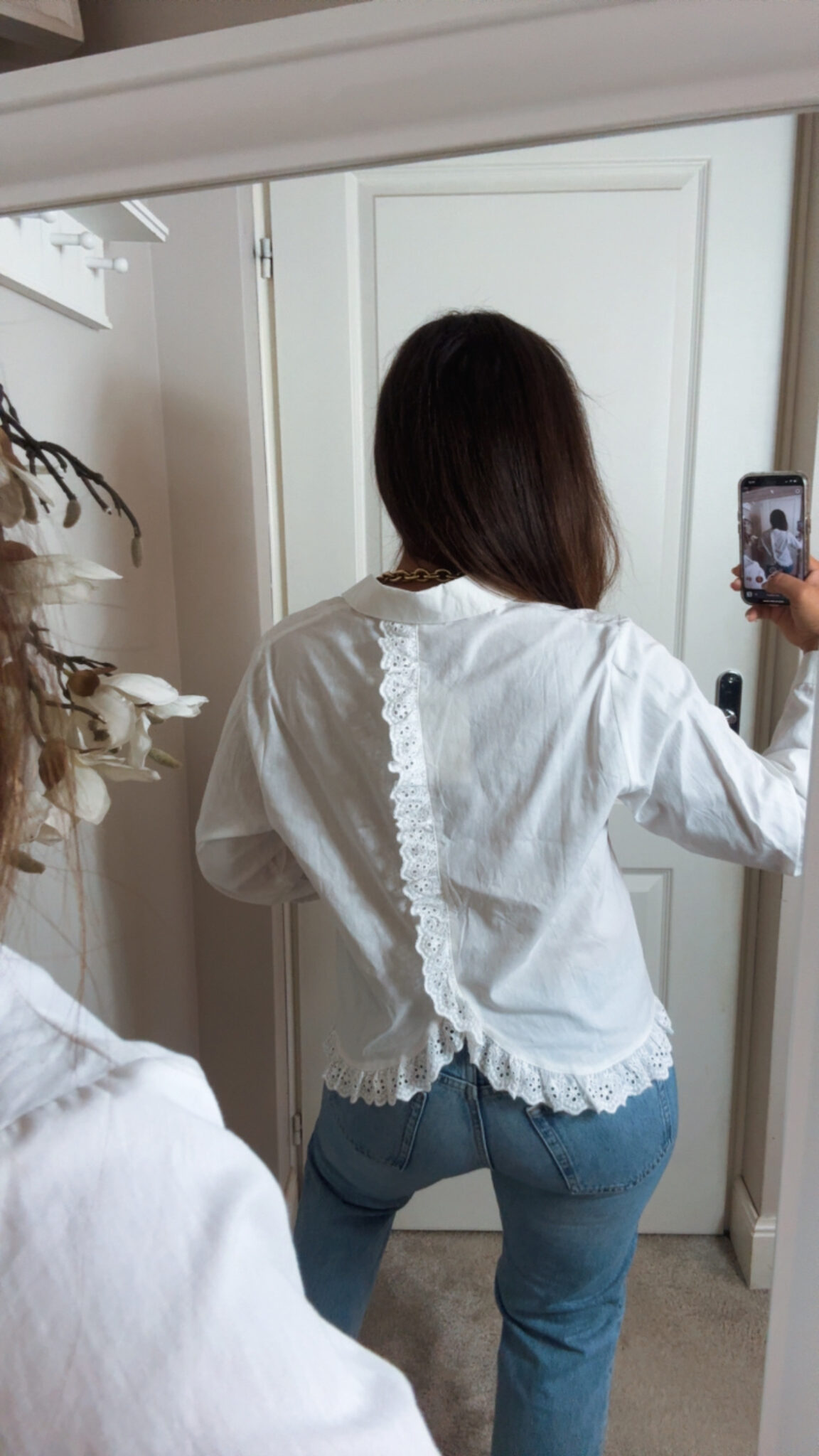 Le conseil de Laura: porter votre chemise ouverte avec un caraco à dentelle ou fermer selon vos envie .