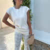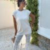 Laura porte la pantalon avec le jersey modèle homme couleur crème ROMEO