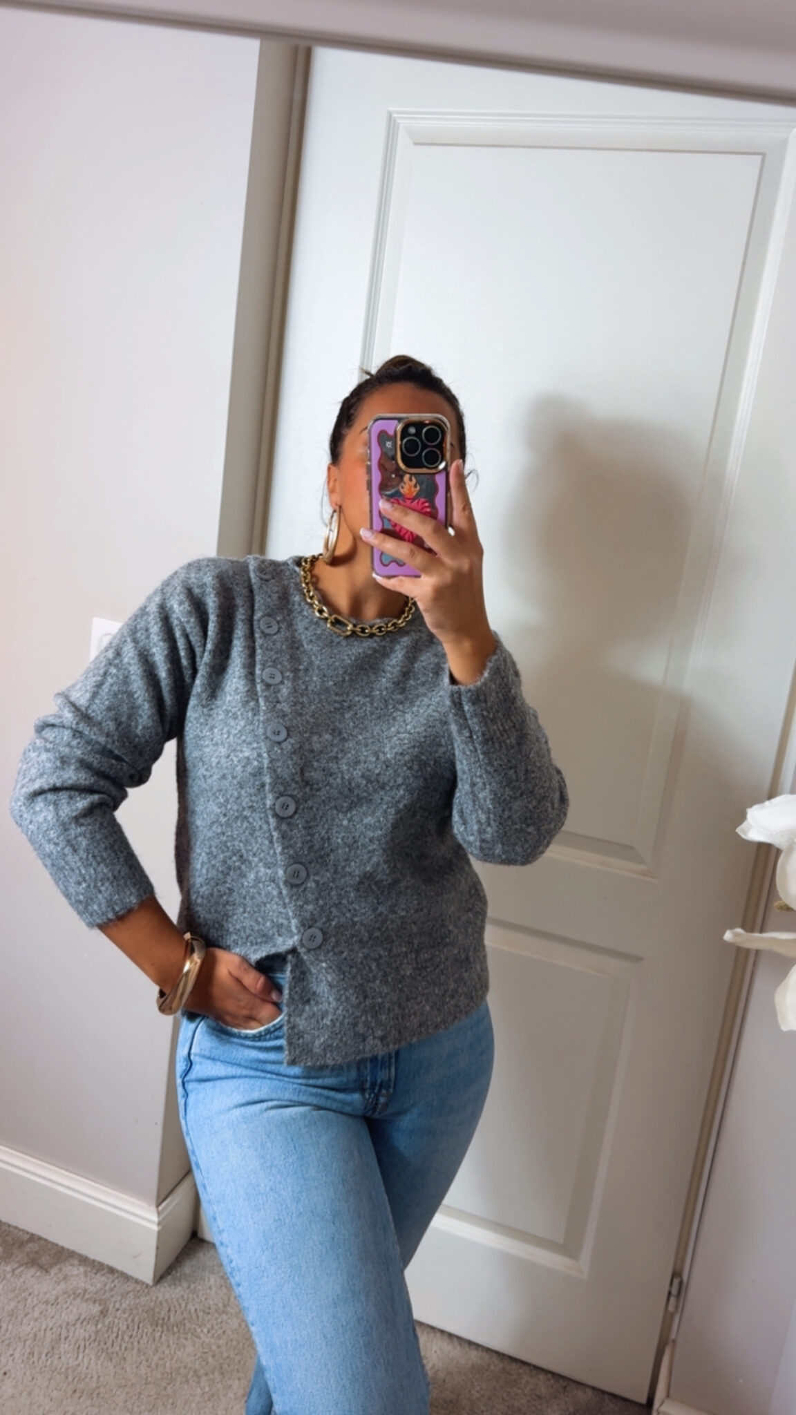 Craquez pour son originalité avec ses boutons, pour un look simple mais à la fois un bon basic pour l’hiver.