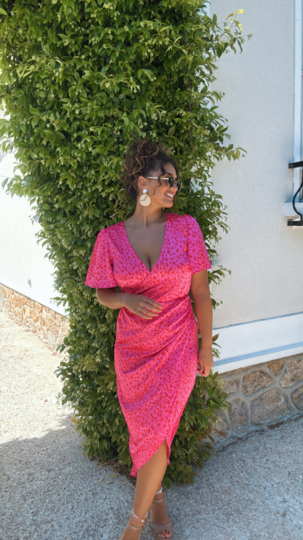 La robe Fanny féminine et coloré, cette robe cache effet cache coeur est la robe élégante à porter pour vos événements.