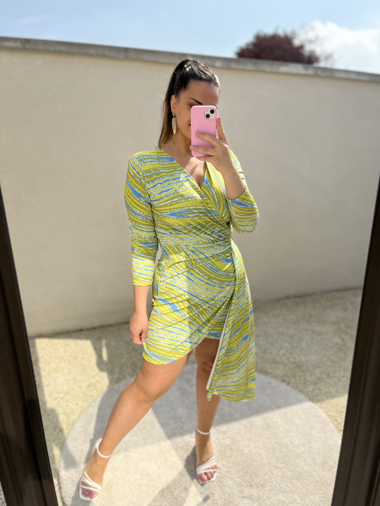 Cette robe près du corp épousera vos formes tout en vous rendant lumineuse grâce au couleurs, la coupe original de la robe apportera un coté chic, c’est la robe parfaite pour vos occasions cette saison!