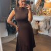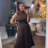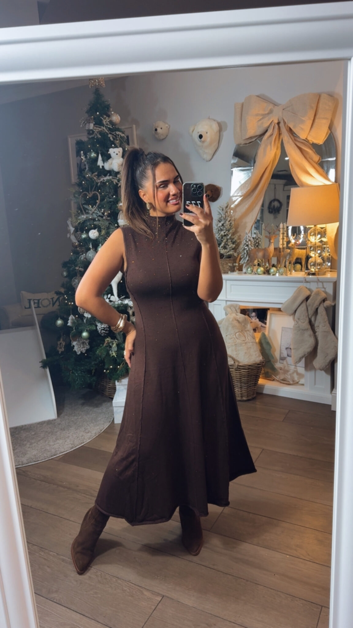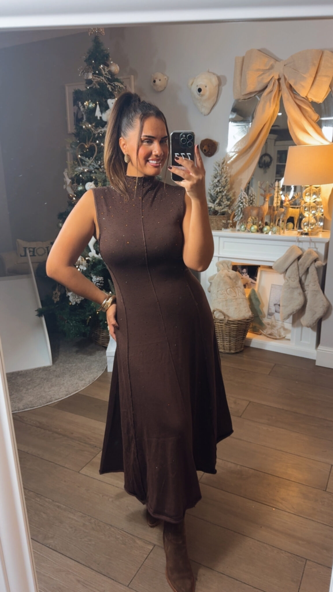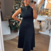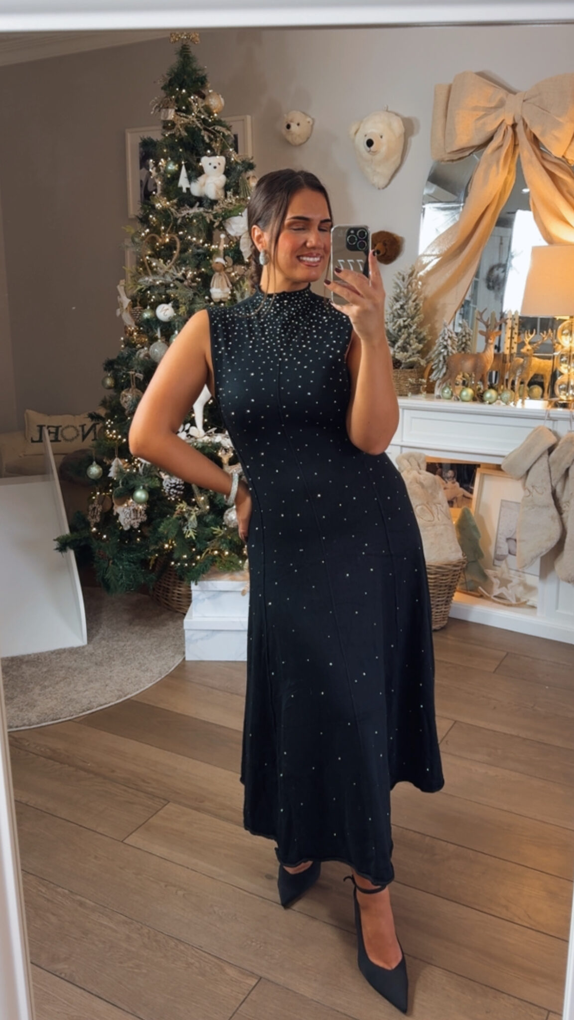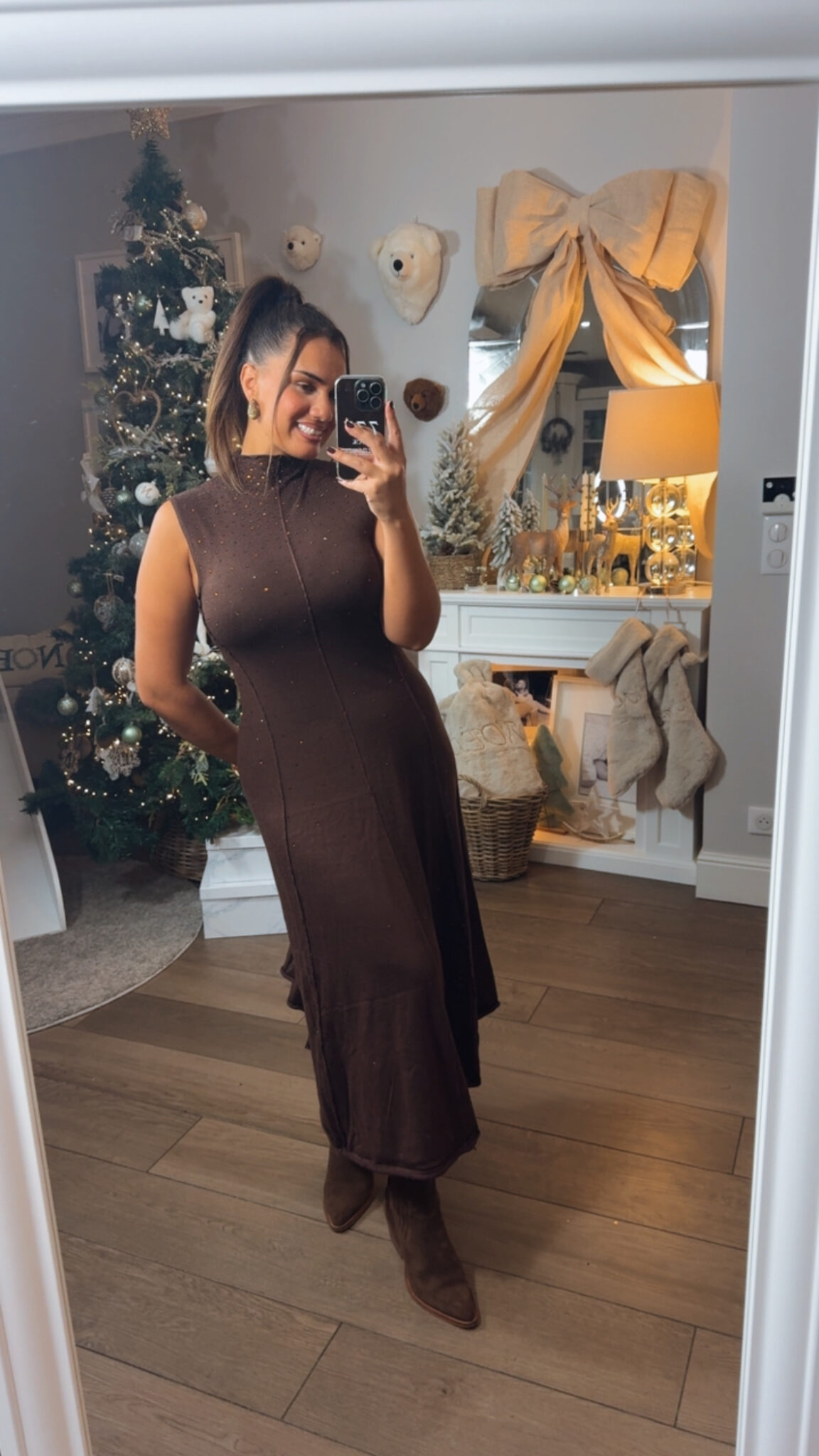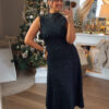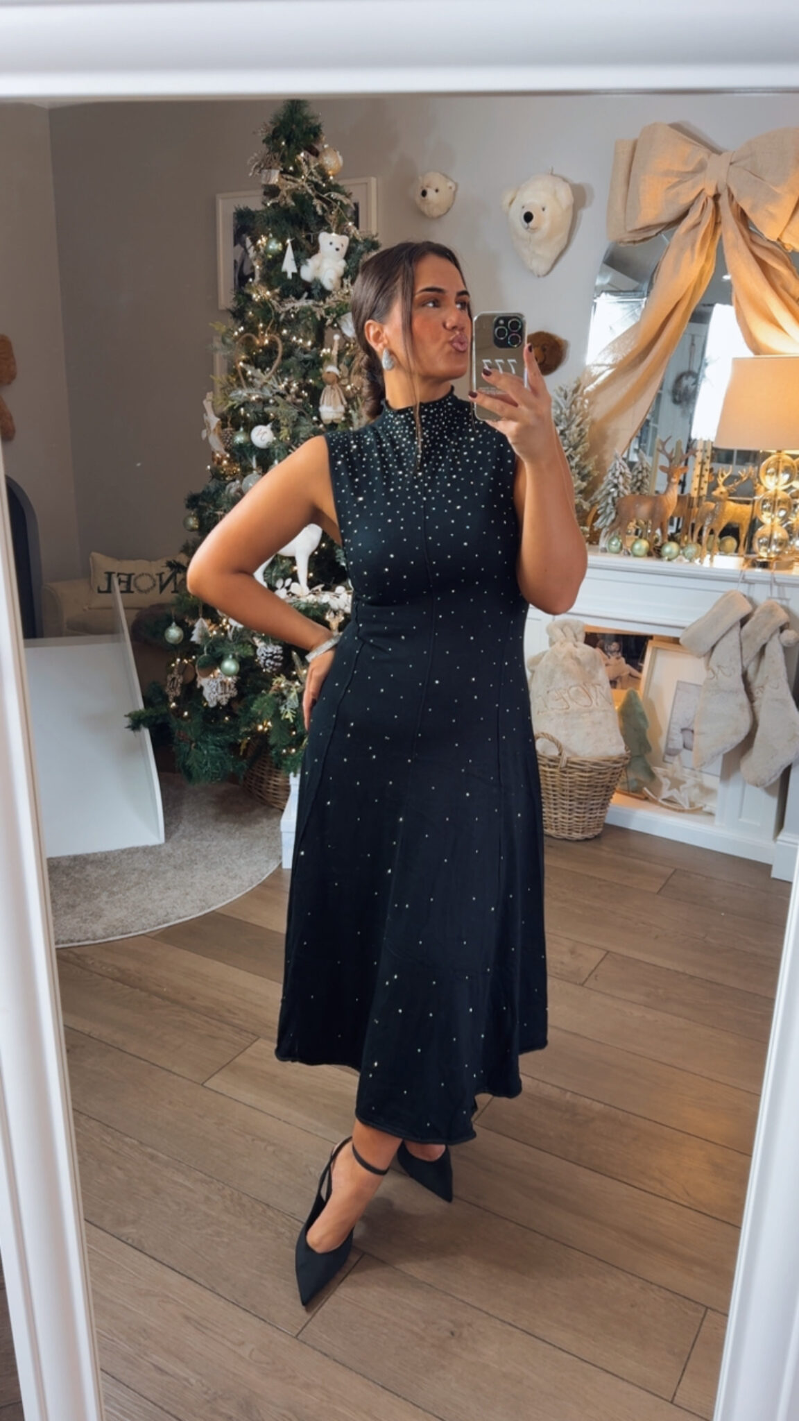 La robe à strass Rosy, la matière ultra agréable à porter toute la soirée  avec un rendu élégant et chic grâce à son col montant discret.