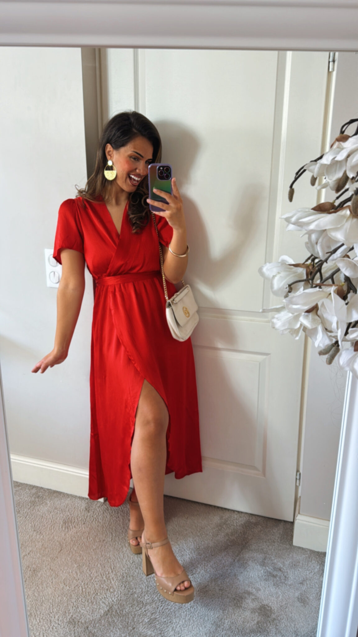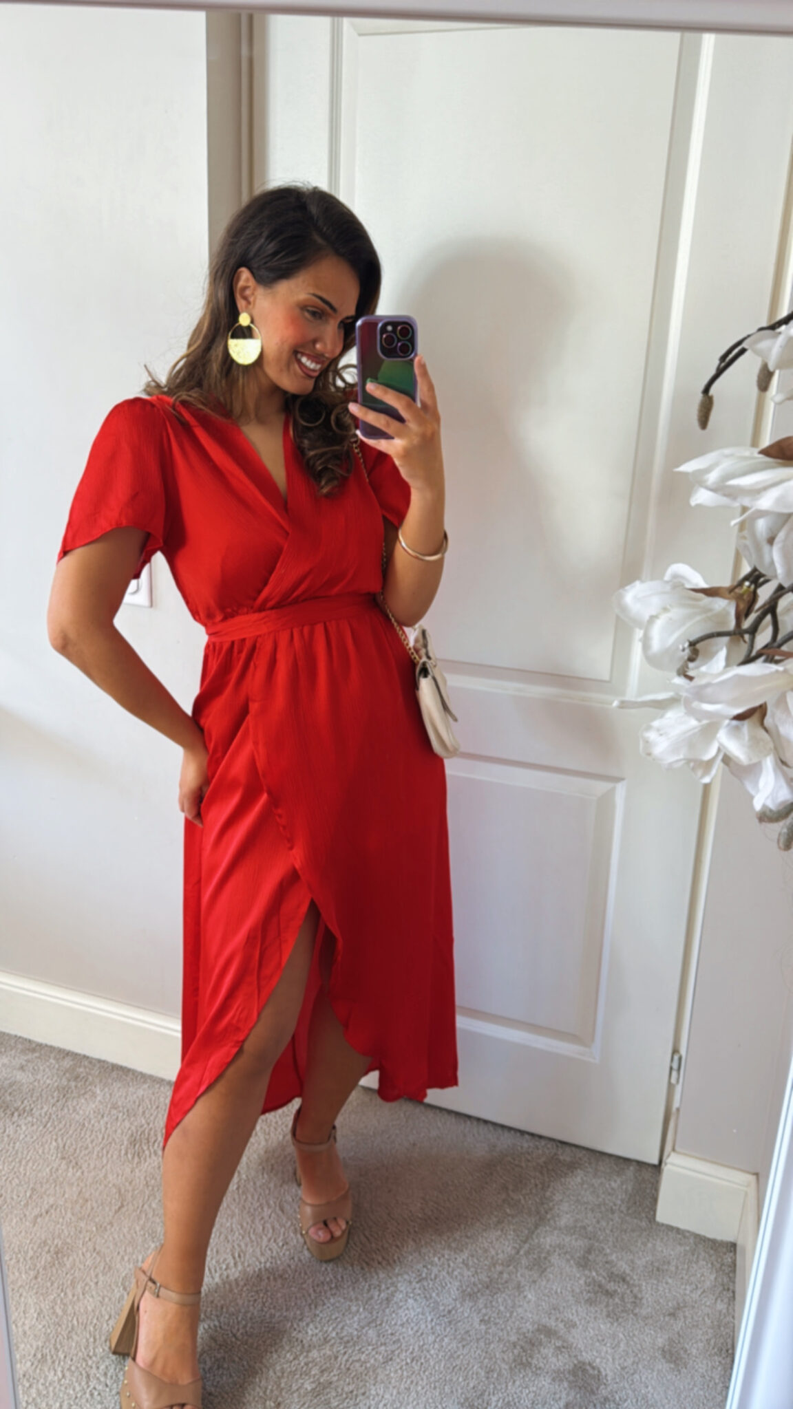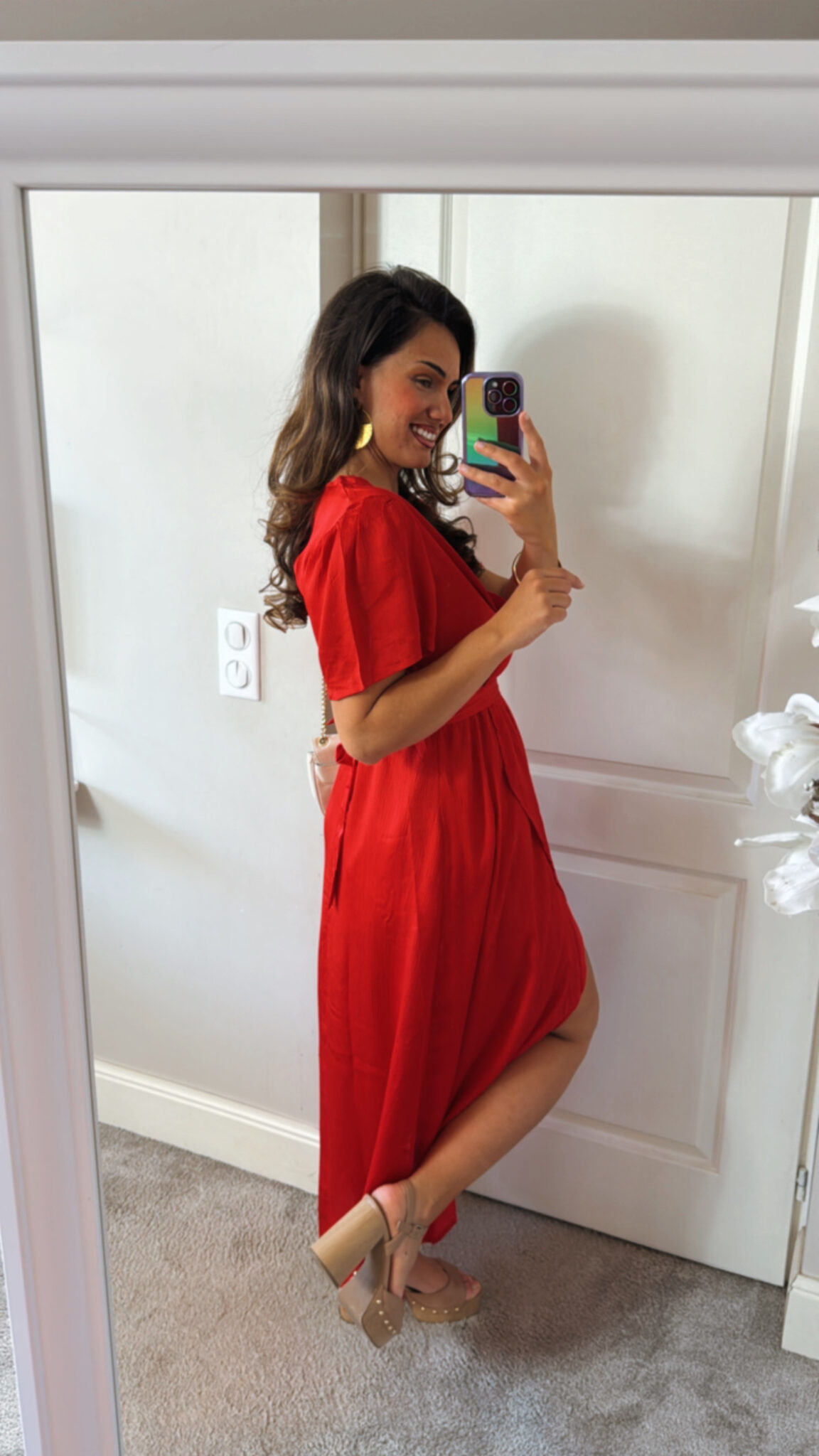 Craquez pour sa couleur rouge vif et sa coupe élégante ultra féminine qui viendras marquer votre taille pour un rendu plus chic.
