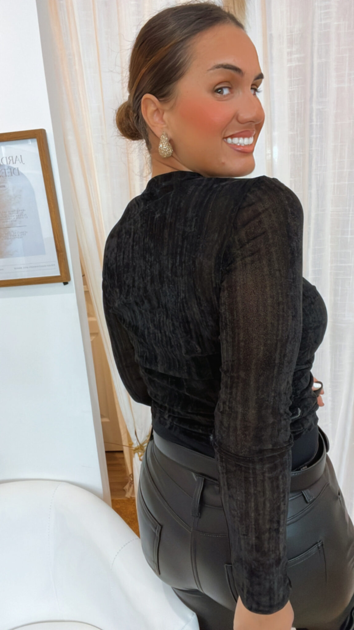 Le top en velours MOCHA, la pièce qui viendra apporter de la douceur et de l’élégance à votre look.